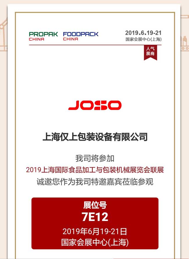 上海僅上邀請你參加上海國際包裝機械展
